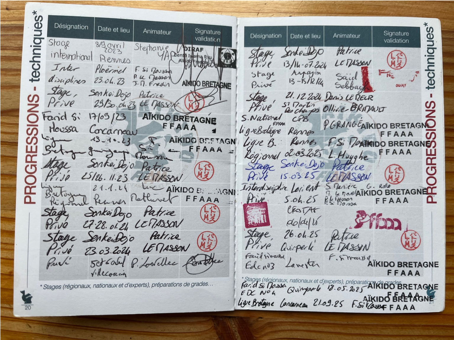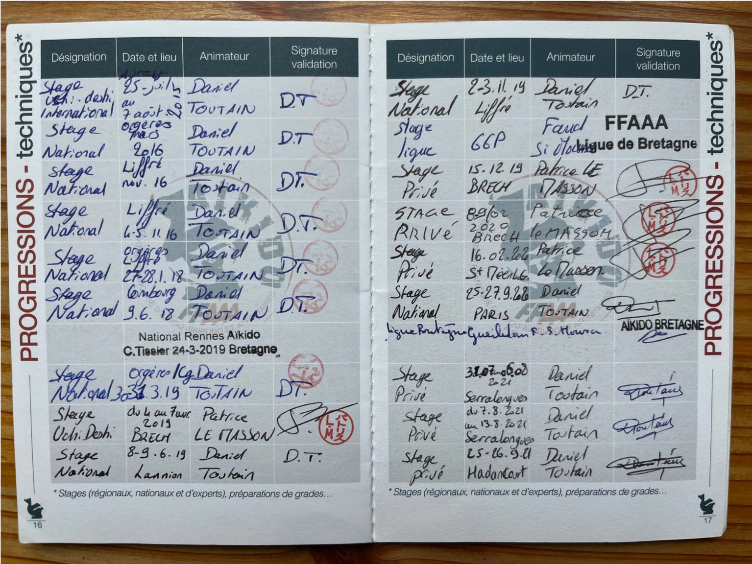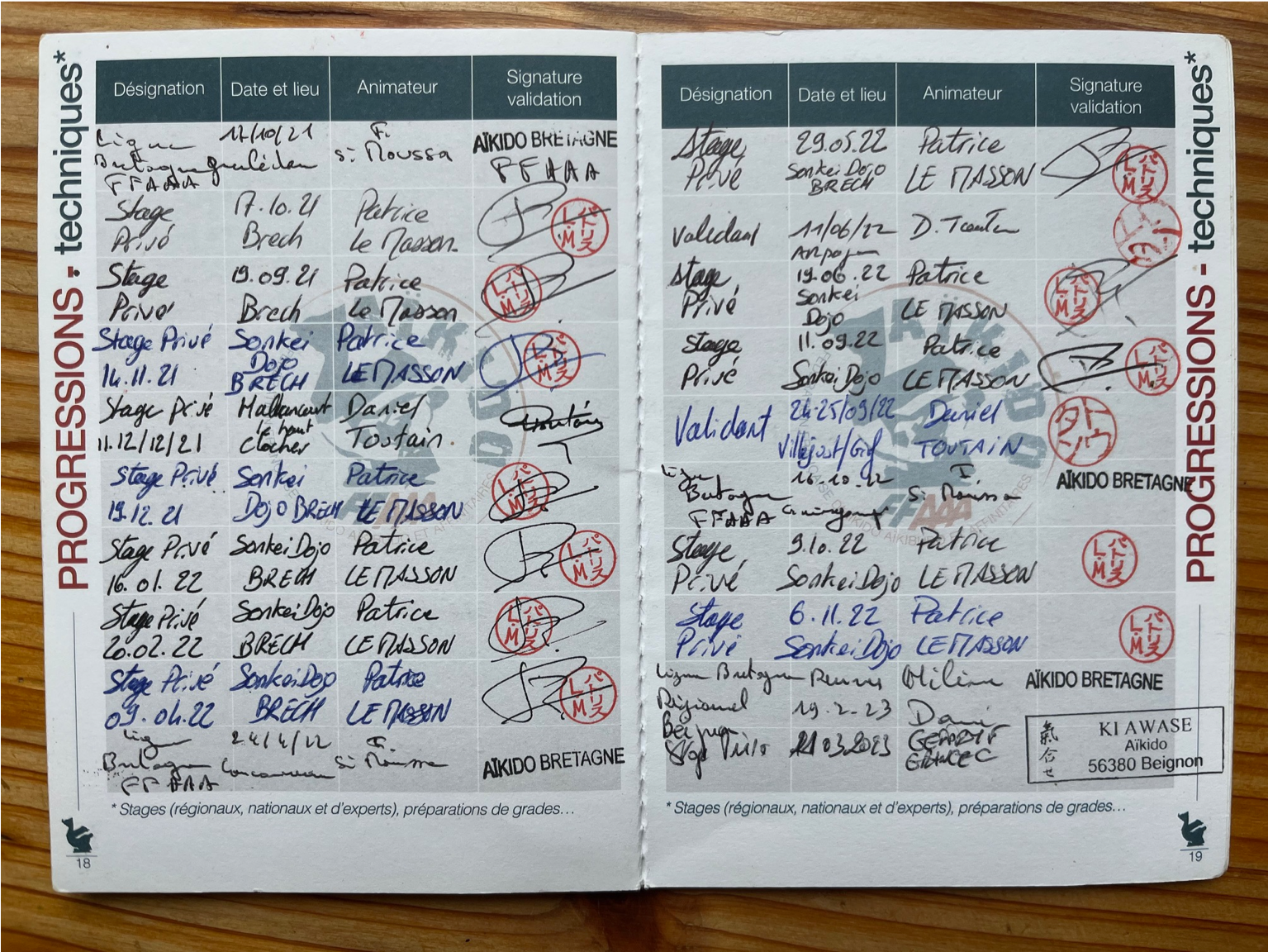 Pour plus de traçabilité, voici les pages de mon premier passeport Aïkido :